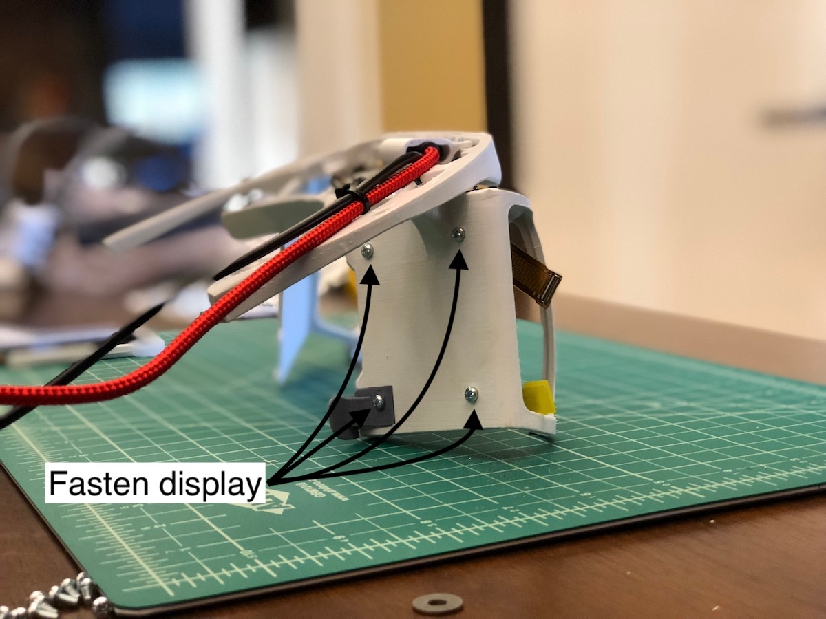 10) Fasten displays and facial interfaces into optics bracket using 4 screws per side G